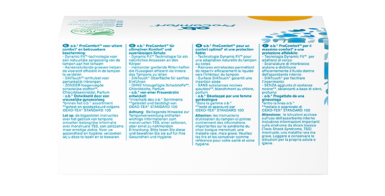 Les tampons o.b.® ProComfort sont synonymes de confort ultime au sein de la gamme o.b.®.