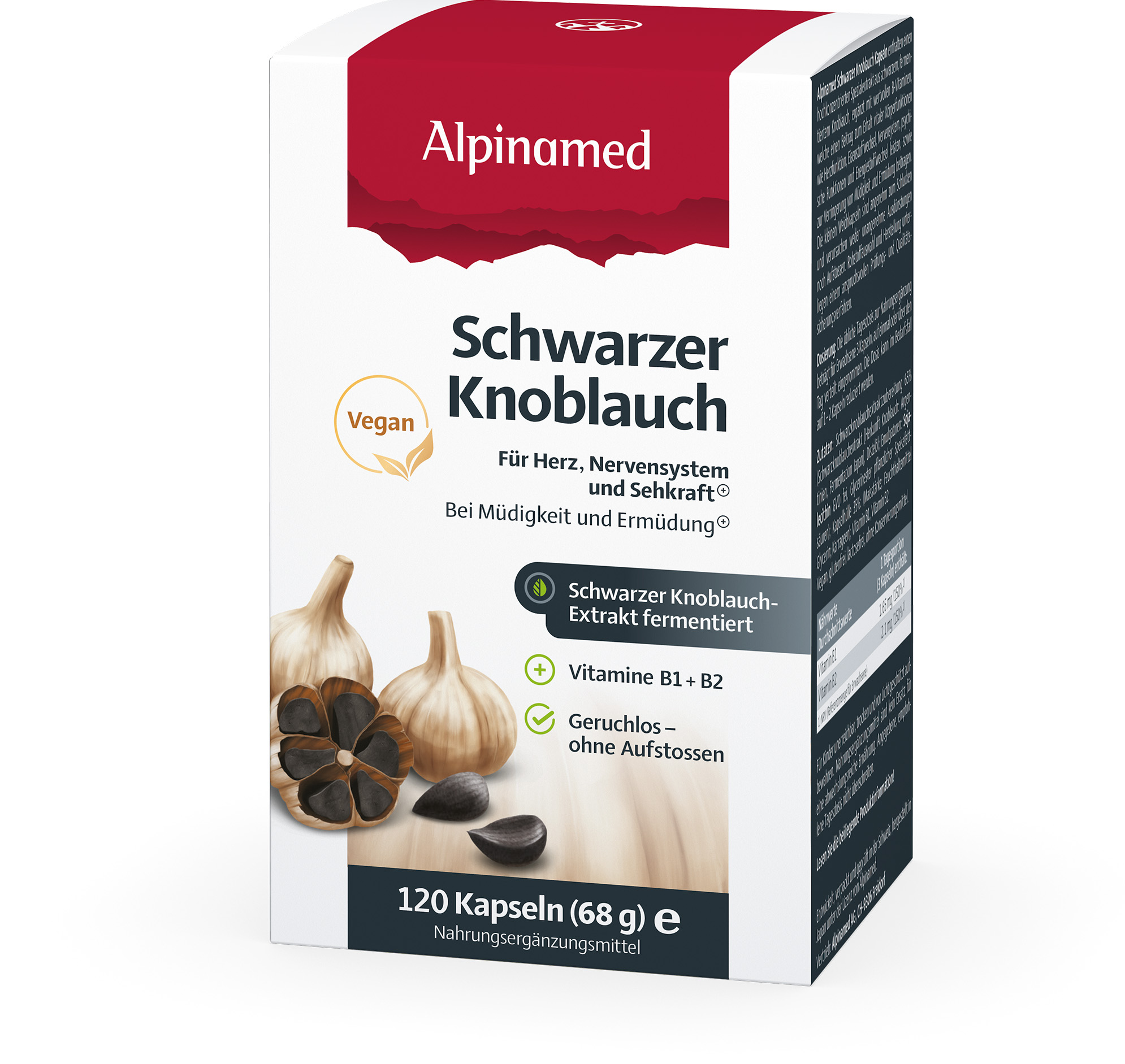ALPINAMED Gélules d'ail noir est un complément alimentaire de haute qualité à base d'ail noir fermenté et de précieuses vitamines B. La formule soigneusement développée soutient les fonctions corporelles importantes et favorise le bien-être général.
