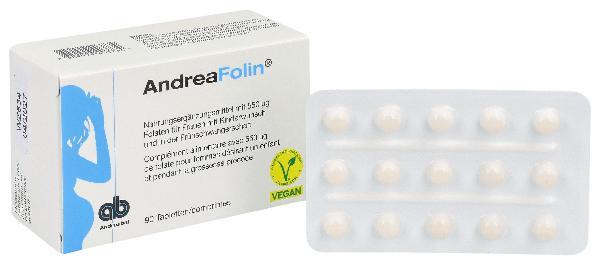 Les comprimés ANDREAFOLIN sont un médicament autorisé d'Andreabal SA. Chaque comprimé contient 0,4 mg d'acide folique. La préparation figure sur la liste des spécialités (LS) et peut être remboursée par la caisse-maladie - sous réserve de la quote-part et de la franchise - à condition de disposer d'une ordonnance médicale.