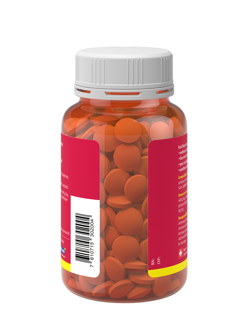 Animaux jusqu'à 50 kg de poids corporel : 4 comprimés