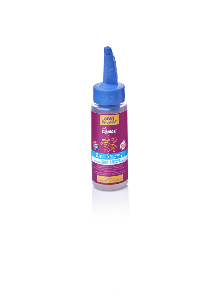 En outre, le shampooing anti-poux d'ANTI-BRUMM® by Elimax® empêche une nouvelle infestation de poux grâce à la substance active LPF® (Lice Protection Factor).