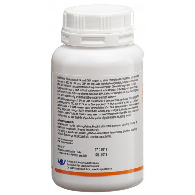 Burgerstein Omega-3 EPA est une préparation d'huile de poisson avec une teneur particulièrement élevée en précieux acide gras oméga-3 EPA (acide eicosapentaénoïque).