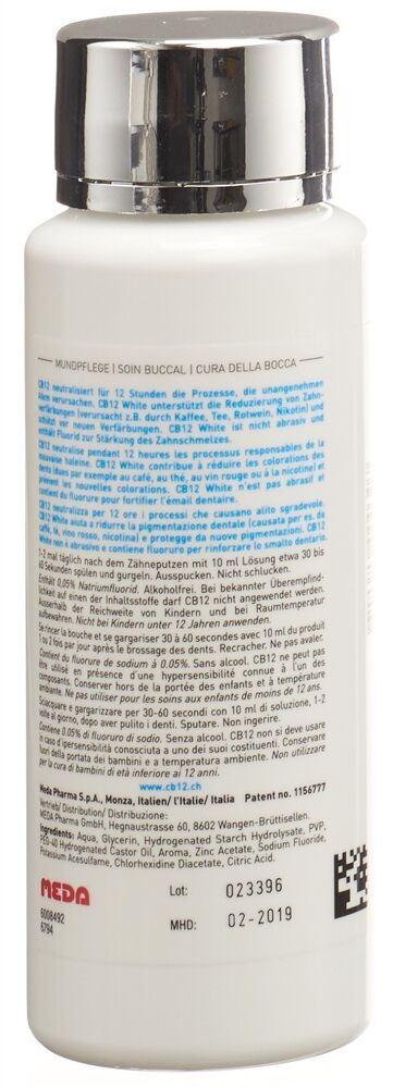 - Utilisation avant d'aller se coucher : Pour maximiser l'effet, utilisez le bain de bouche CB12 White en plus avant d'aller vous coucher.