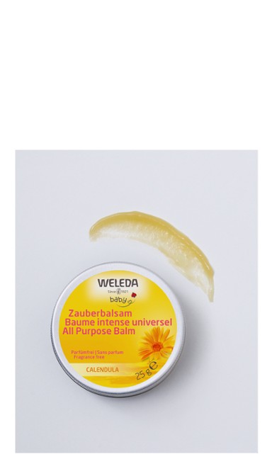 Le Baume magique Weleda soigne intensément les zones de peau sèche et offre une protection naturelle contre le dessèchement.