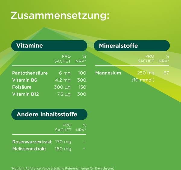 Dissoudre chaque jour **1 sachet** dans un verre d'eau et boire - idéal pour commencer la journée ou pendant les phases de stress accru.