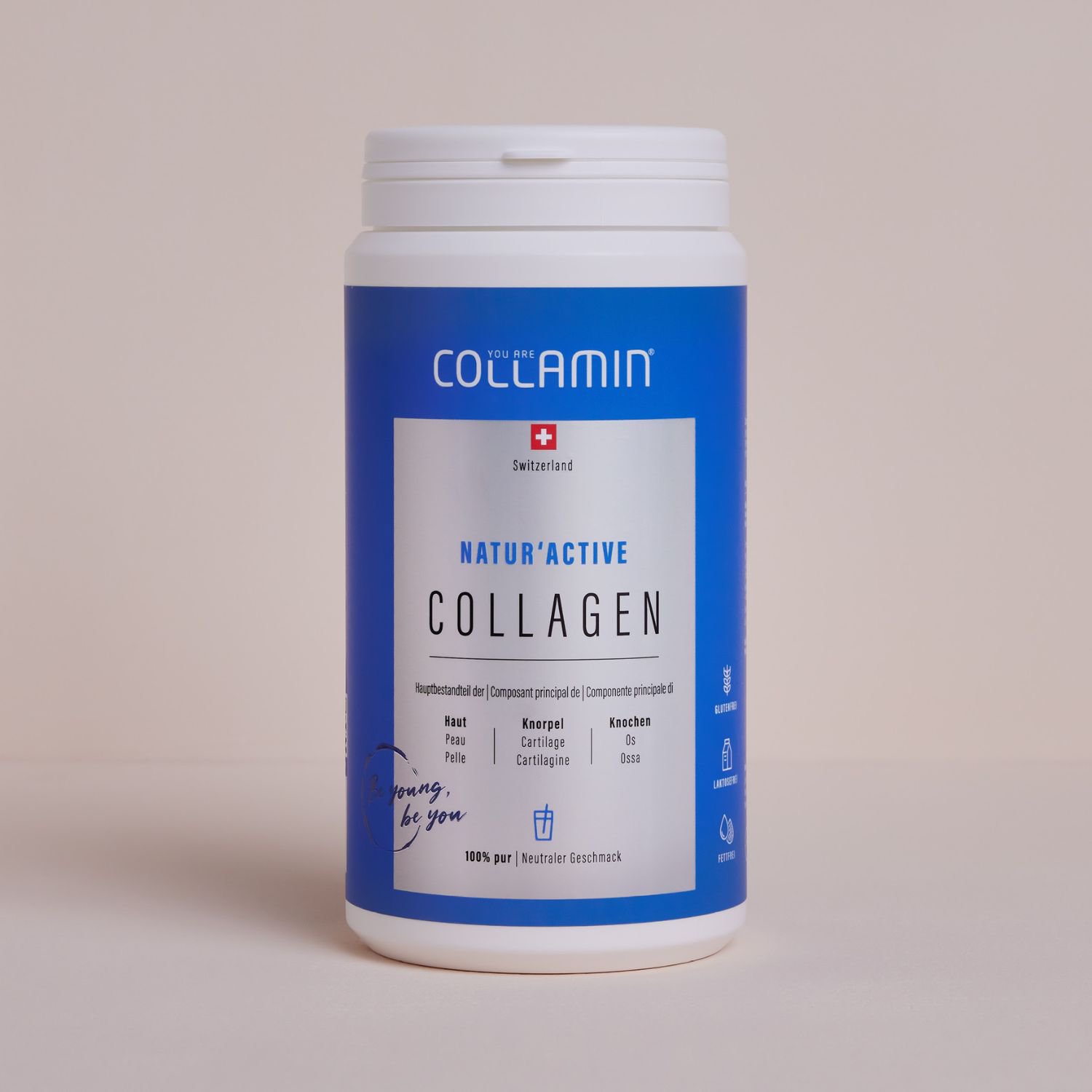 COLLAMIN Natur'Active est un complément alimentaire de haute qualité, composé de peptides de collagène 100% purs. Le collagène, la protéine la plus abondante dans le corps, joue un rôle essentiel dans le maintien de la structure de la peau, des articulations et des os. À partir de l'âge moyen, la production de collagène par l'organisme diminue, ce qui peut entraîner des changements visibles tels que la formation de rides, des douleurs articulaires et un affaiblissement des cheveux et des ongles. Les peptides de collagène spécialement optimisés dans COLLAMIN Natur'Active favorisent la synthèse du collagène et contribuent ainsi à soutenir la teneur naturelle en collagène de l'organisme.