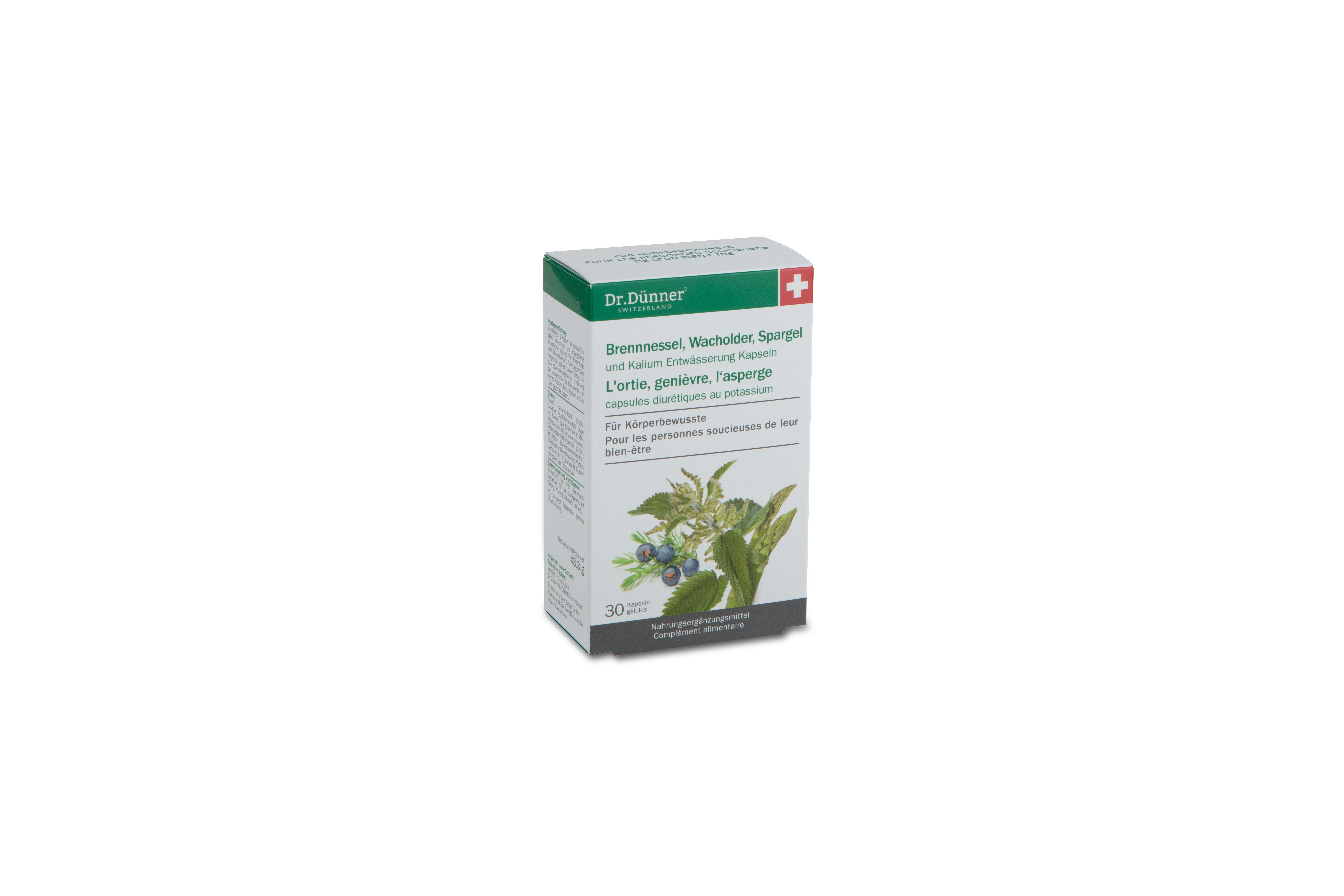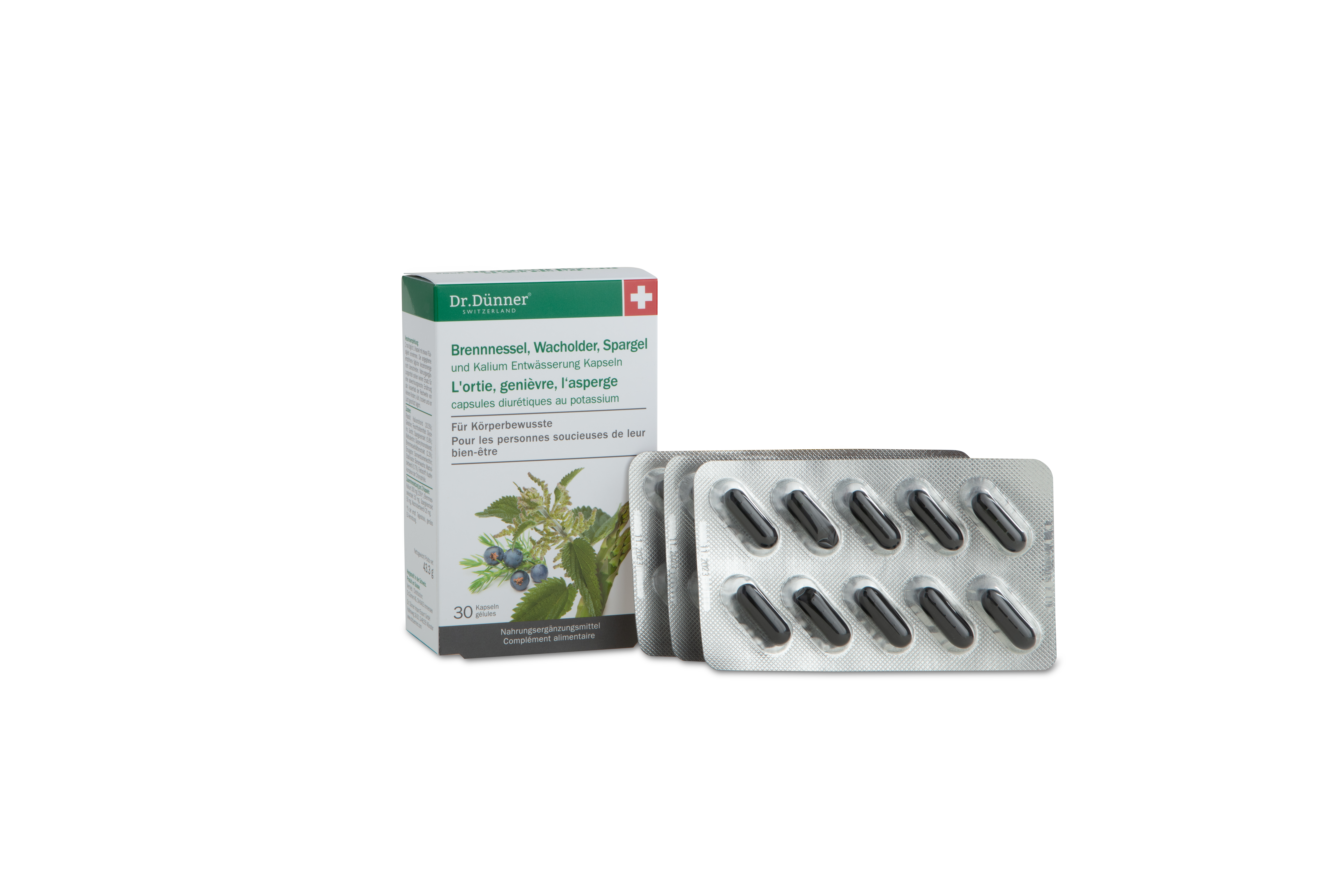L'ortie, le genévrier et l'asperge sont des plantes éprouvées de la phytothérapie traditionnelle européenne et sont souvent prises pour soutenir la fonction d'élimination. Elles sont particulièrement appréciées pendant le jeûne pour soulager l'organisme. L'oligo-élément essentiel qu'est le potassium a une influence importante sur l'équilibre hydrique du corps. En augmentant la production d'urine, le corps est drainé. Le potassium contribue au maintien d'une pression artérielle normale.