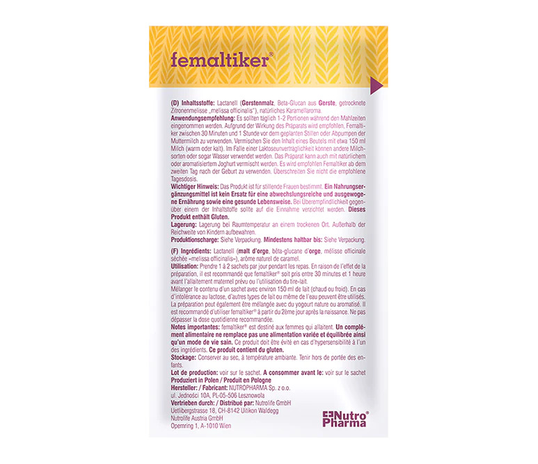 Informations sur les produits "Femaltiker Complément alimentaire Allaitement 12 x 6.5g"
