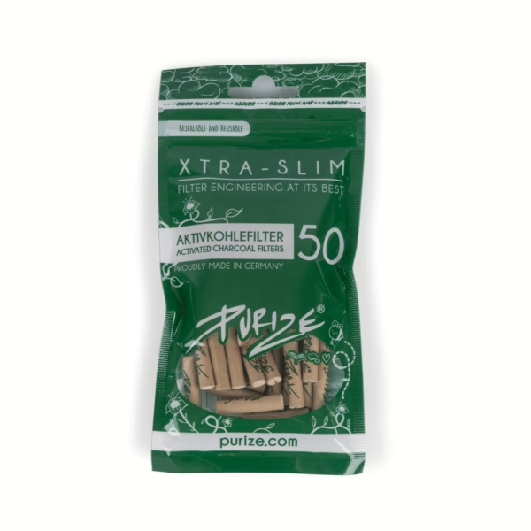 Filtres à charbon actif PURIZE® Xtra Slim ORGANIC - 50 pièces | Super Skinny, Super Stark - pour une expérience de tabagisme fraîche et en douceur