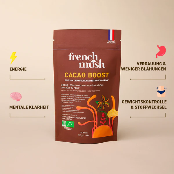 Les gélules French Mush triple mélange d'extraits de champignons réunissent les précieuses propriétés de trois extraits de champignons de haute qualité : Reishi, Cordyceps et Crinière de Lion. Cette combinaison unique a été conçue pour soutenir le corps et l'esprit et favoriser le bien-être de manière naturelle. Tous les extraits sont issus de l'agriculture biologique en France et en Europe, ce qui garantit une qualité et une traçabilité maximales.