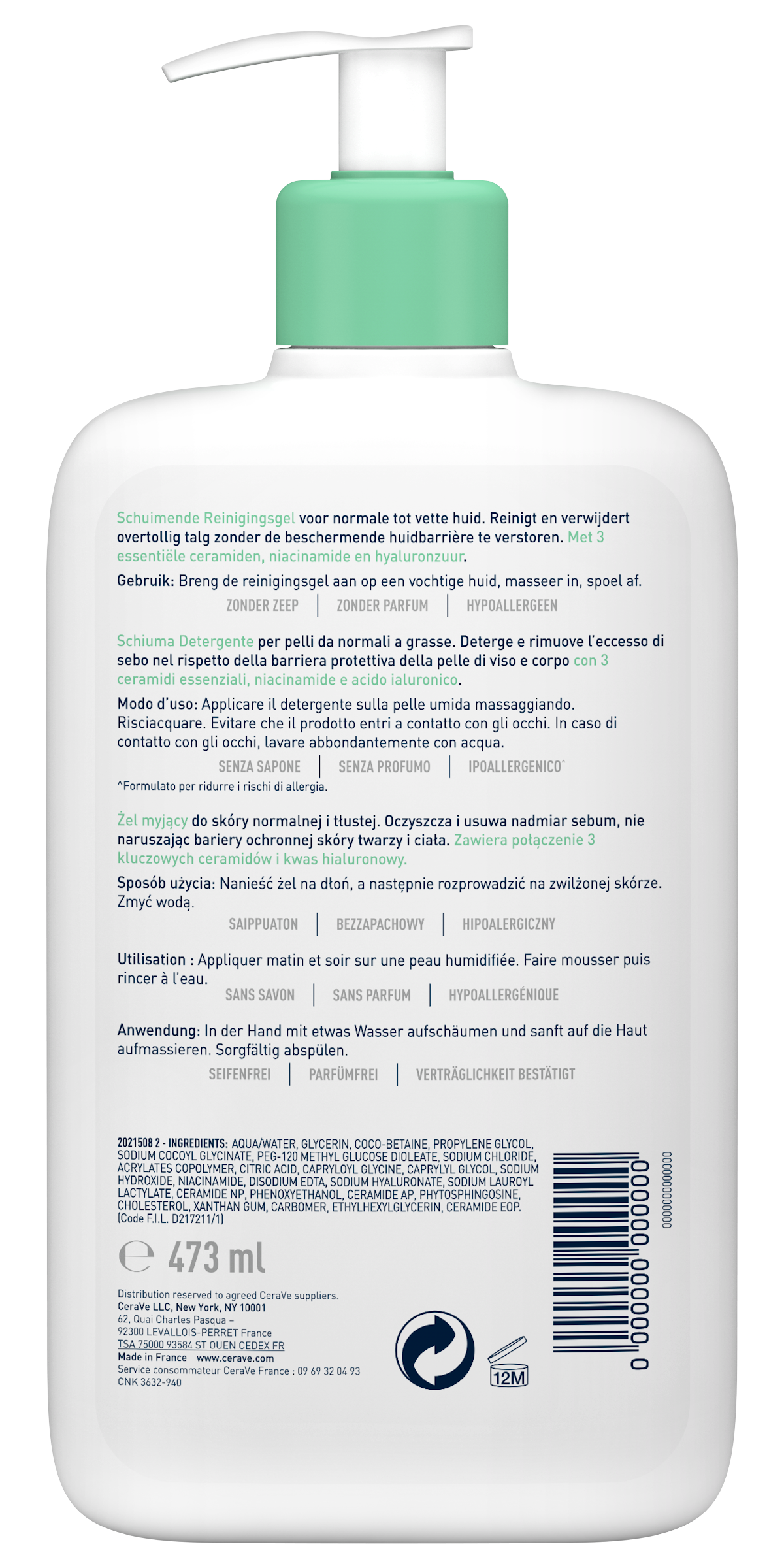 Informations sur les produits "Gel nettoyant moussant CeraVe 473ml"