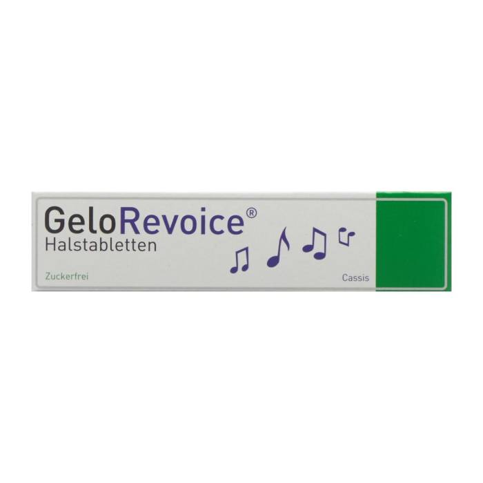 Informations sur les produits "GeloRevoice pastilles pour la gorge Cassis-Menthol 20 pièces"