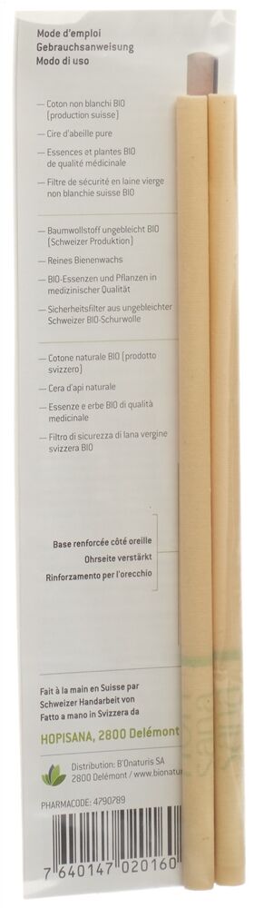 Les bougies auriculaires HOPIsana sont fabriquées à la main en Suisse avec des substances naturelles.