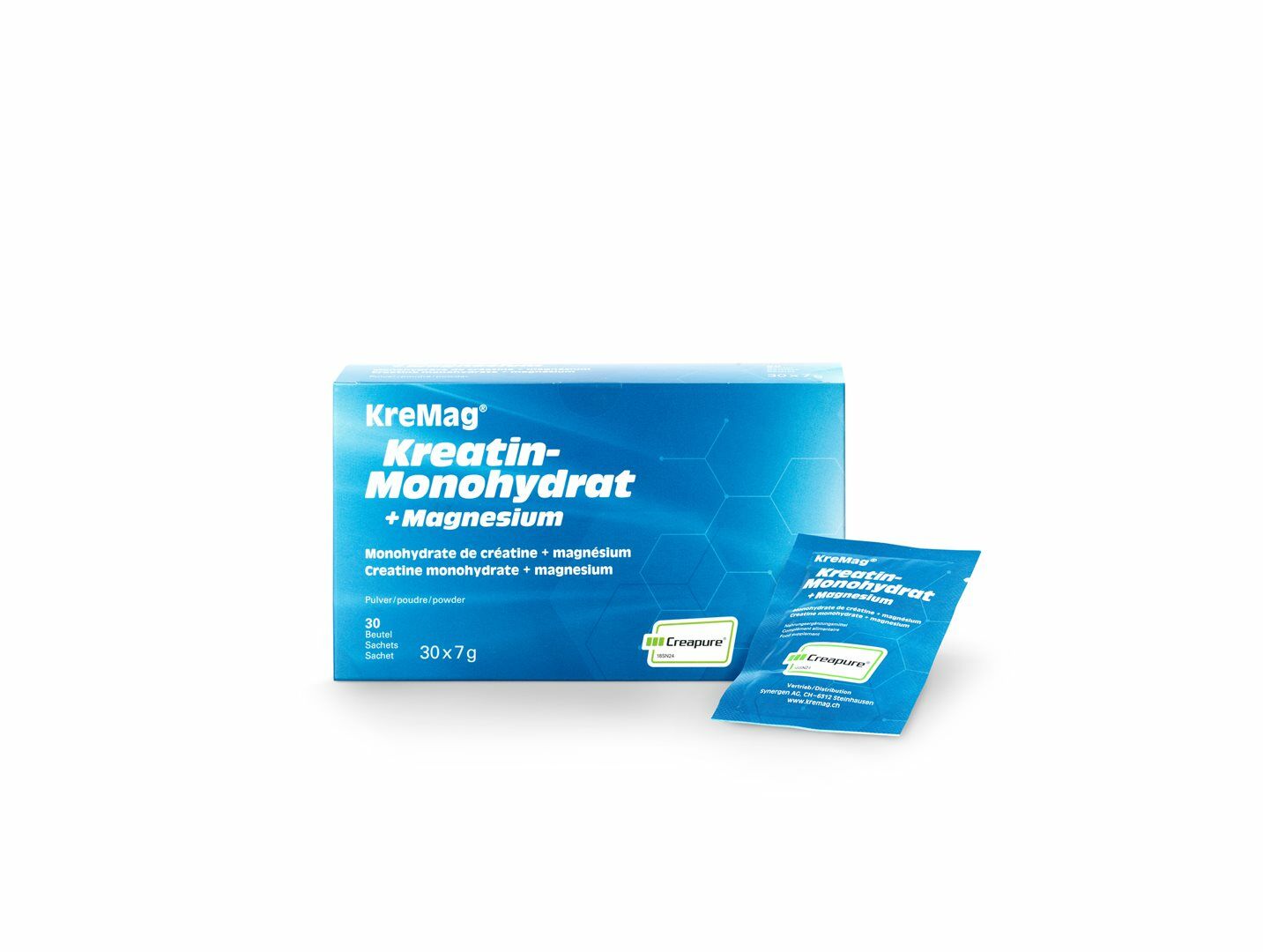 Une cuillère-mesure ou un sachet de KreMag® contient 3 g de créatine (= 3,4 g de créatine monohydrate) et 40 % de l'apport journalier recommandé en citrate de magnésium.