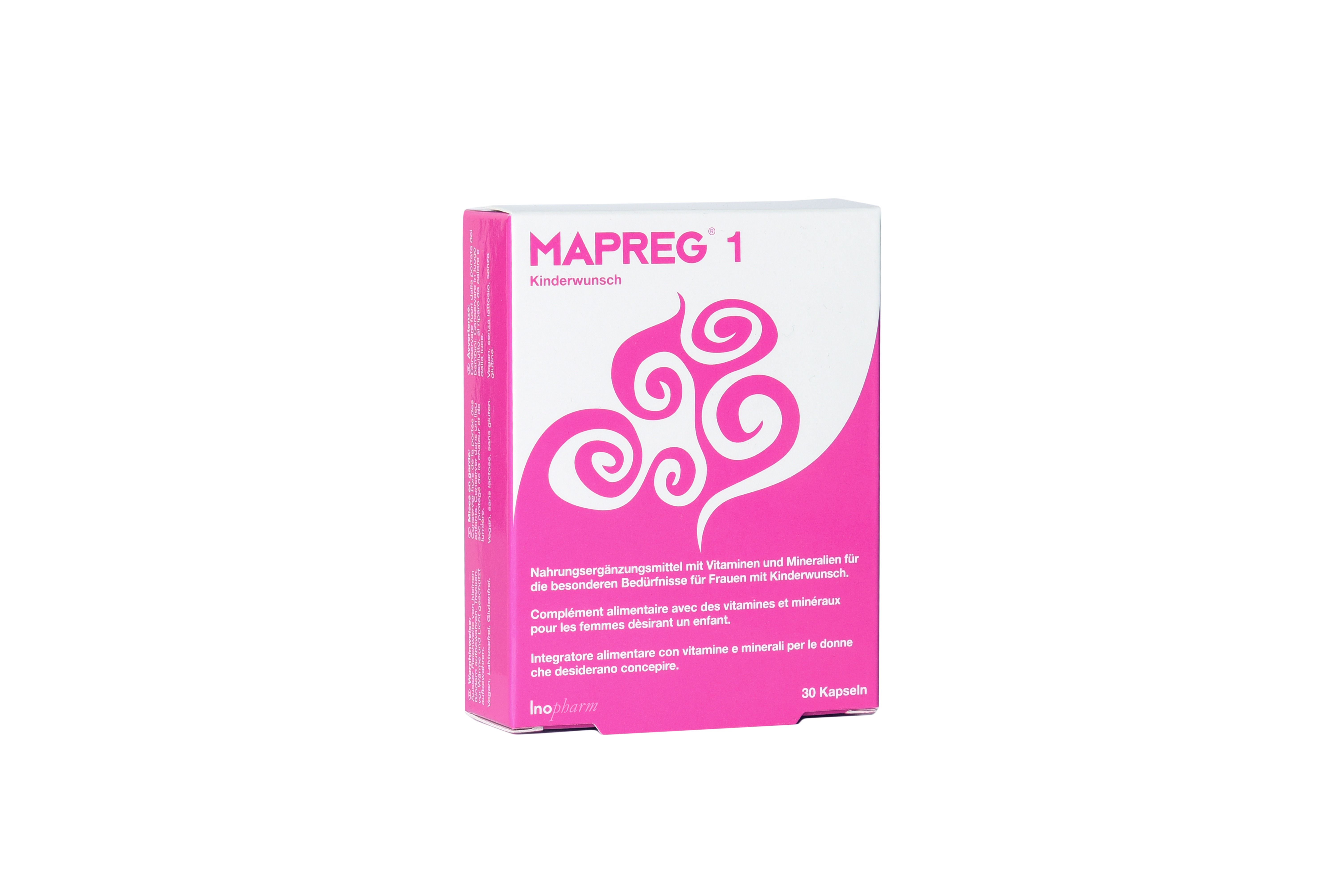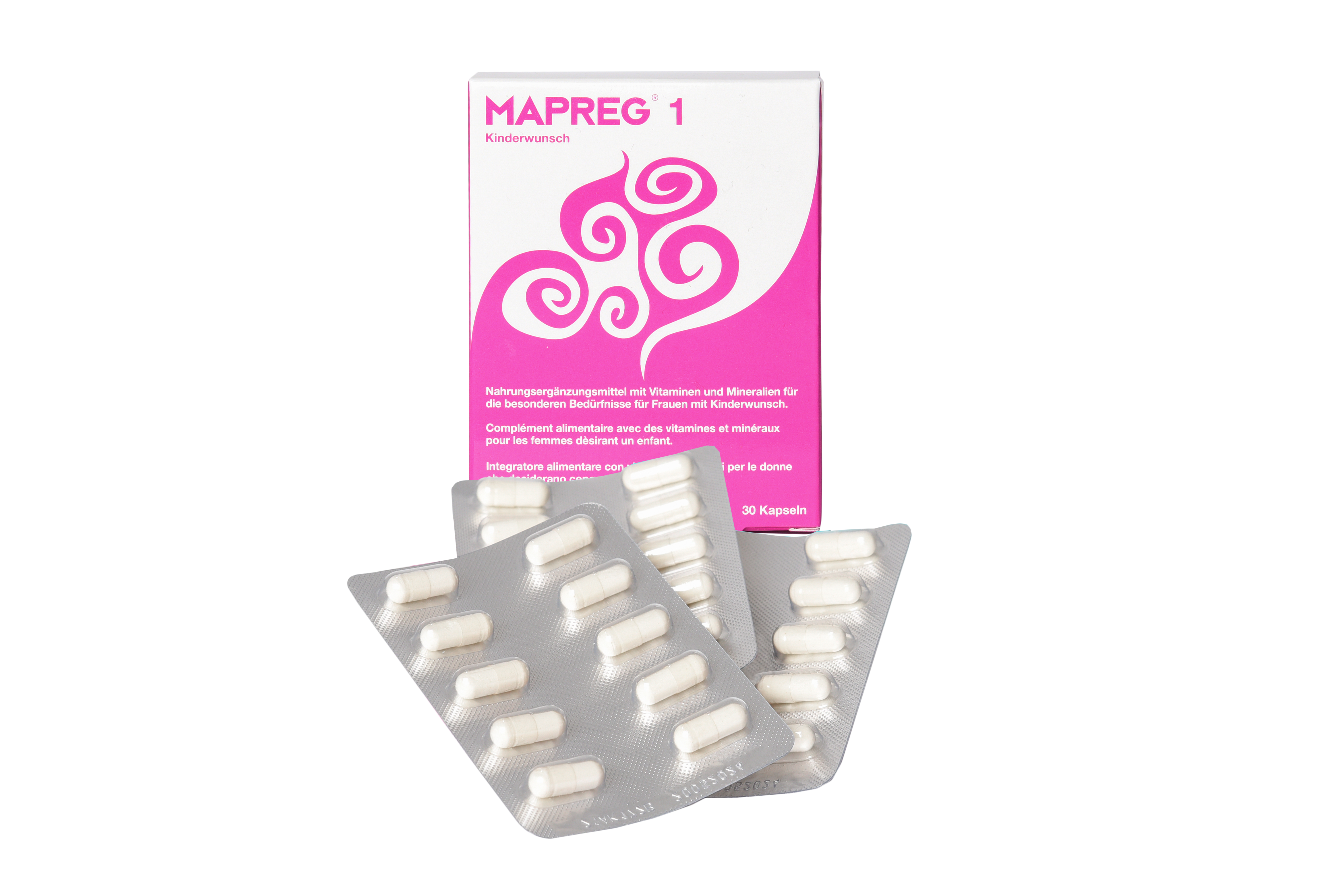 Mapreg 1 est un complément alimentaire végétalien contenant les vitamines importantes acide folique, vitamine B6, vitamine B12, vitamine D et le minéral iode, destiné aux femmes qui souhaitent avoir un enfant.
