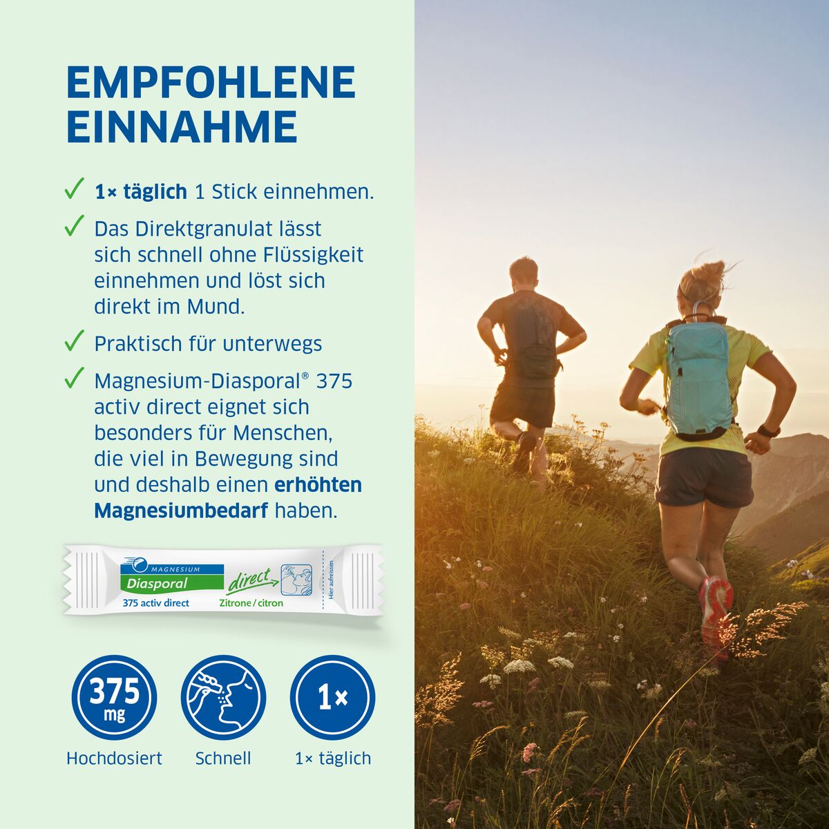 Remarques importantes : Magnesium Diasporal Activ Direct est un complément alimentaire et ne peut se substituer à une alimentation équilibrée ou à un mode de vie sain. Il peut avoir un effet laxatif chez les personnes sensibles.