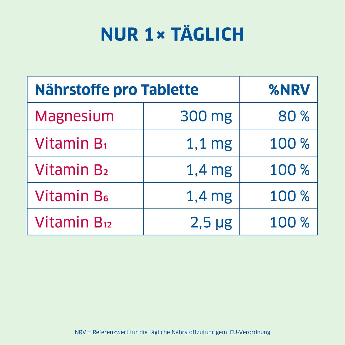 Le complexe de vitamines B qu'il contient, comprenant les vitamines B1, B2, B6 et B12, favorise le bien-être général et contribue au fonctionnement normal du système nerveux. Le magnésium est un minéral essentiel qui joue un rôle dans de nombreuses fonctions de l'organisme, notamment la fonction musculaire et le maintien d'un niveau d'énergie normal.