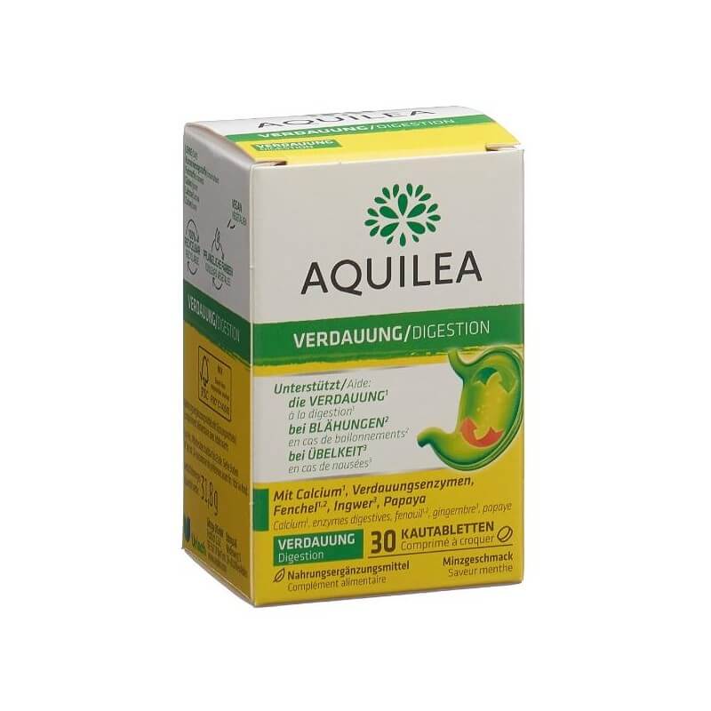 Aquilea Digestivo favorise une digestion saine. Grâce à un mélange d'enzymes naturelles et d'extraits de plantes comme la menthe poivrée et la camomille, la digestion est favorisée en douceur, ce qui peut entraîner une sensation d'estomac plus agréable.