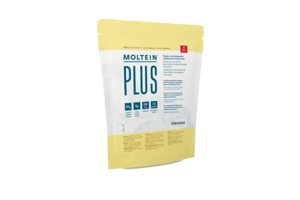 Moltein PLUS est un autre produit phare de la gamme, disponible sous forme de poudre ou de Moltein PLUS Ready 2 Mix prêt à l'emploi. Ce produit est particulièrement destiné aux personnes qui ont besoin d'un complément de protéines en plus de leur alimentation. Il est facile à préparer et aide le corps à couvrir ses besoins quotidiens en protéines. La composition de Moltein PLUS est spécialement conçue pour une biodisponibilité élevée et une digestion facile.