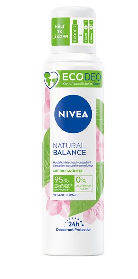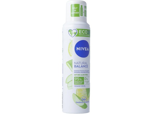 Nivea Female Ecodeo Natural Balance Aloe Vera Bio Aeros Spr 125 mlDécouvrez la fraîcheur et le soin naturels avec le Nivea Female Ecodeo Natural Balance Aloe Vera. Ce déodorant ne vous offre pas seulement une protection contre les odeurs désagréables, mais soigne également votre peau en douceur grâce à la force de l'aloe vera.Le déodorant est exempt de sels d'aluminium et d'alcool, ce qui le rend particulièrement doux pour la peau. Il ne laisse pas de résidus blancs sur les vêtements et procure une agréable sensation de peau sèche.Le spray pratique permet une application facile et une répartition uniforme du produit sur votre peau. Grâce à sa formule douce, le Nivea Female Ecodeo Natural Balance Aloe Vera convient également aux peaux sensibles.Exemples d'utilisation :Appliquer avant le sport pour éviter les mauvaises odeurs.Utiliser le matin après la douche pour rester frais toute la journée