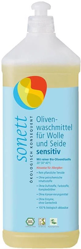 Les lessives Sonett nettoient efficacement et sont biodégradables. Elles ne contiennent pas de parfums, de colorants ou de conservateurs synthétiques. La lessive Sonett Sensitiv, qui convient aux personnes allergiques, est particulièrement appréciée.