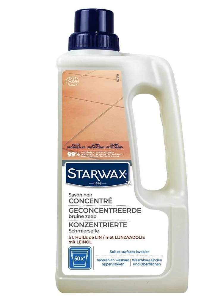 Si vous tenez à un nettoyage traditionnel, optez pour le savon noir Starwax. Ce savon naturel nettoie les sols en bois, les carrelages et les surfaces en pierre en douceur et en profondeur.