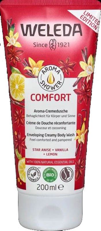 Découvrez avec la Douche Aroma Comfort Weleda une douche pleine de bien-être. Ce soin de douche naturel choie votre peau avec de précieux extraits de plantes et lui procure une sensation de douceur veloutée.Grâce au parfum agréablement chaud de vanille, d'ylang-ylang et de benjoin, la douche devient un rituel relaxant. La douche Aroma Shower Comfort Weleda est exempte de parfums, de colorants et de conservateurs synthétiques ainsi que de matières premières à base d'huile minérale.La douche Aroma Shower Comfort Weleda est testée dermatologiquement et convient à tous les types de peau. Elle nettoie en douceur, sans dessécher la peau, et laisse un parfum discret sur la peau.Utilisation : verser une petite quantité de produit dans la main, répartir sur la peau humide, masser délicatement et rincer ensuite abondamment.Pour un résultat optimal, nous recommandons d'appliquer ensuite une crème hydratante ou une lotion corporelle Weleda.