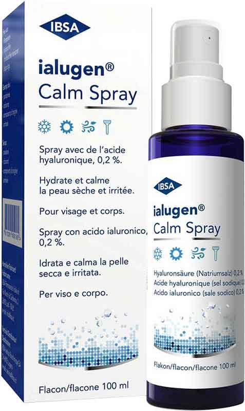 Les produits tels que le gel Ialugen Calm et le spray Ialugen Calm apaisent les peaux irritées ou sensibles et favorisent la régénération.
