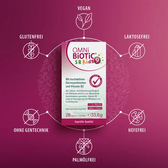 OMNi-BiOTiC® SCHOOL Kids est un probiotique spécialement conçu pour les enfants, adapté de manière ciblée aux besoins du quotidien scolaire. La pression de la performance, les défis sociaux ou le stress familial peuvent entraîner des tensions dès le plus jeune âge - et nuire à la santé intestinale ainsi qu'à celle de l'enfant.