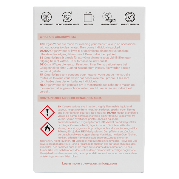 Informations sur les produits "OrganiCup OrganiWipes sachet 10 pièces"