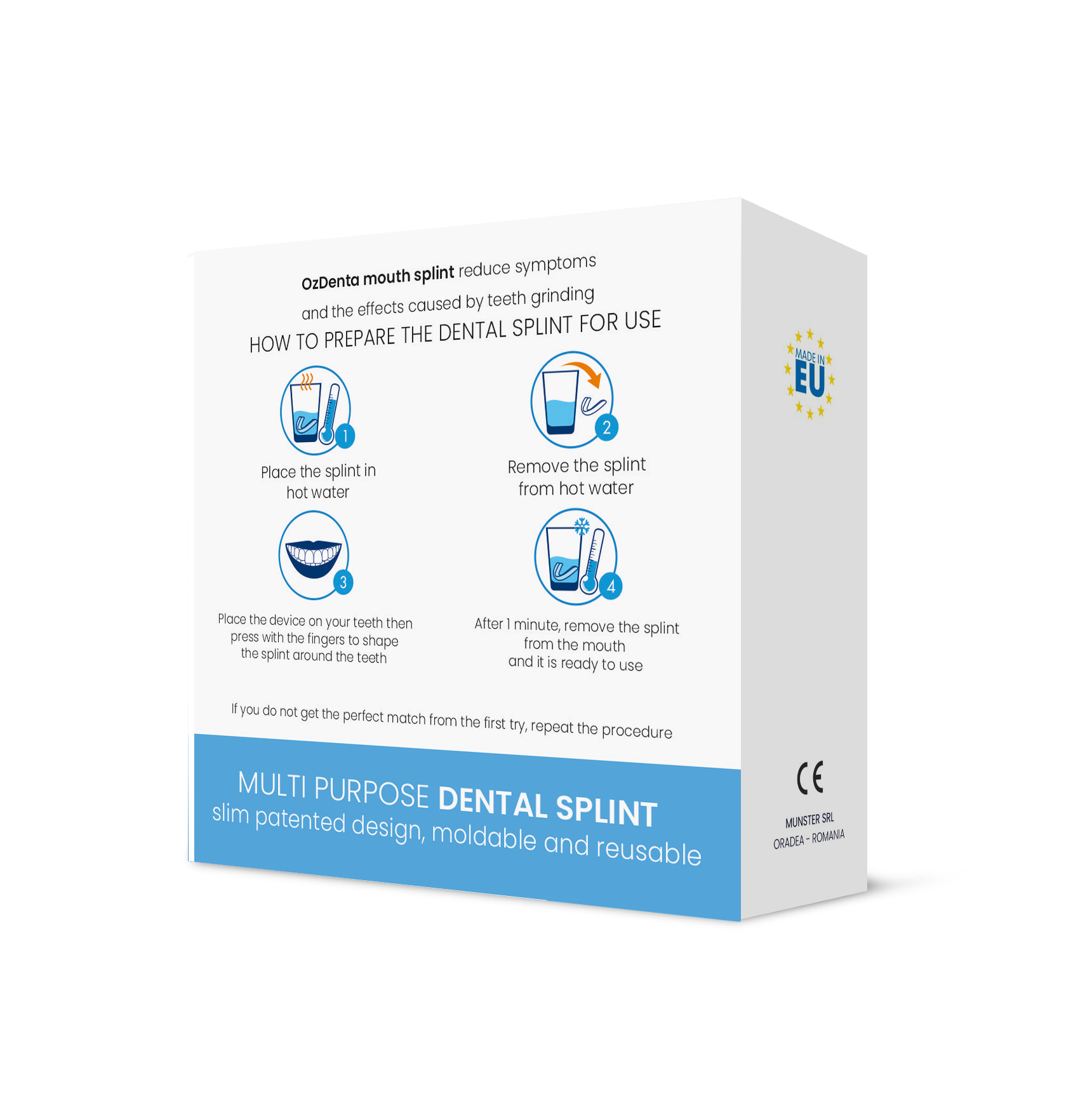 Vous souffrez de douleurs à la mâchoire, de maux de tête matinaux ou de sensibilité dentaire? La gouttière occlusale OzDenta® Wizard offre une solution professionnelle pour soulager les symptômes causés par le grincement des dents la nuit (bruxisme) et les troubles de l'articulation temporo-mandibulaire (ATM). La gouttière ultrafine et flexible s'adapte facilement à la maison, sans avoir besoin de consulter un dentiste.