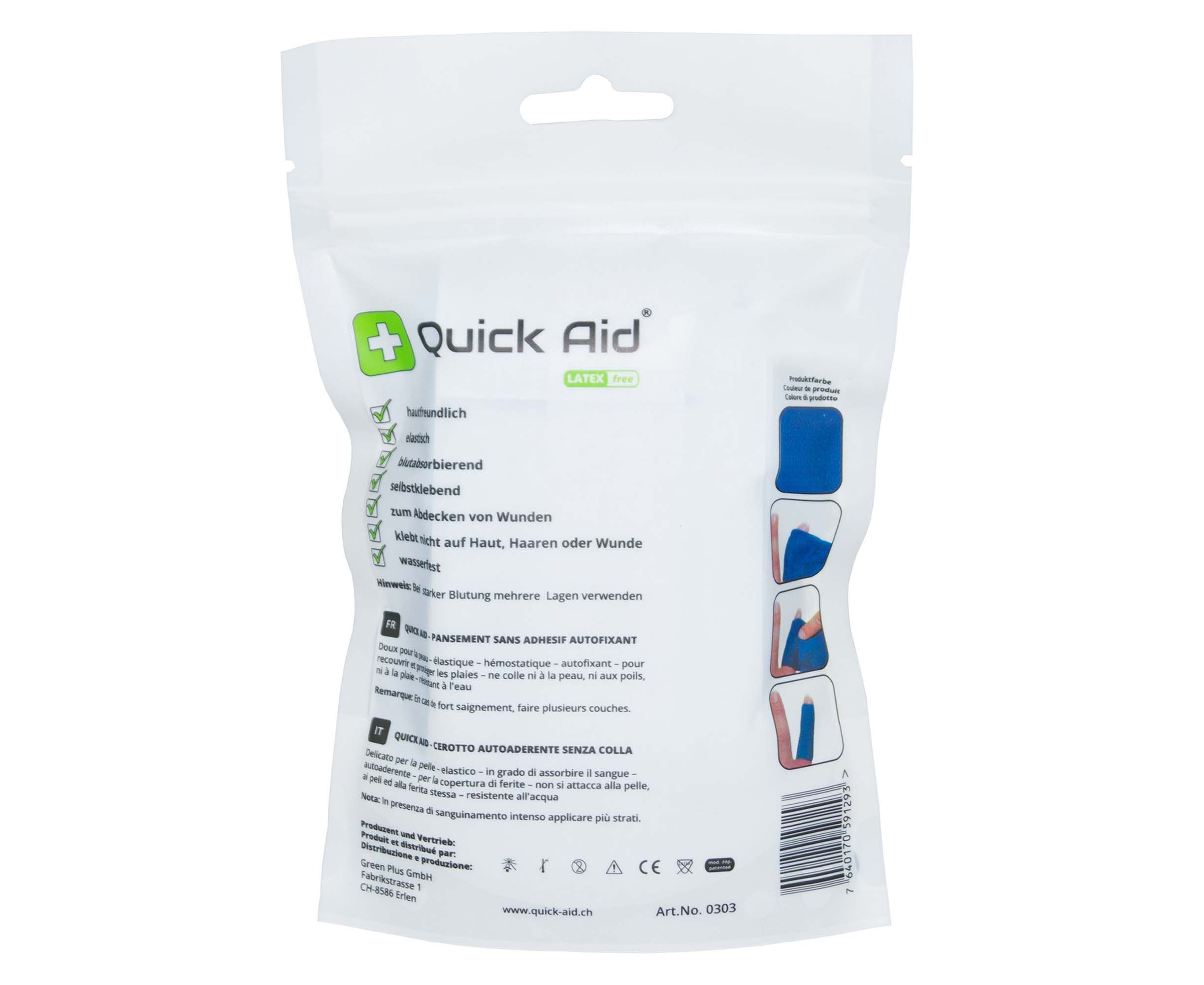 Quick Aid est autocollant et n'adhère donc pas à la peau, aux cheveux ou aux plaies.