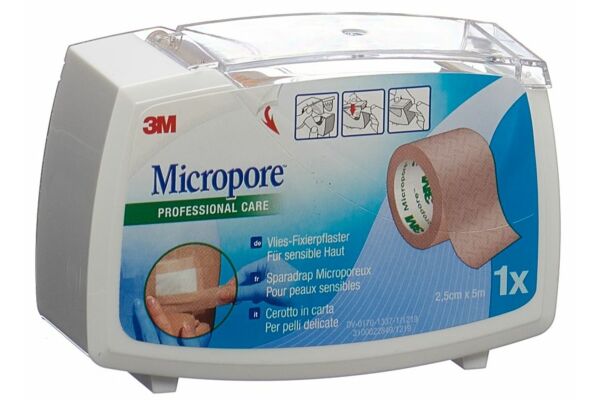 Le sparadrap Micropore non tissé 3M avec son distributeur pratique est la solution idéale pour fixer les pansements en douceur, notamment sur les peaux sensibles ou délicates. Il convainc par ses propriétés dermophiles et se retire facilement et sans laisser de traces.