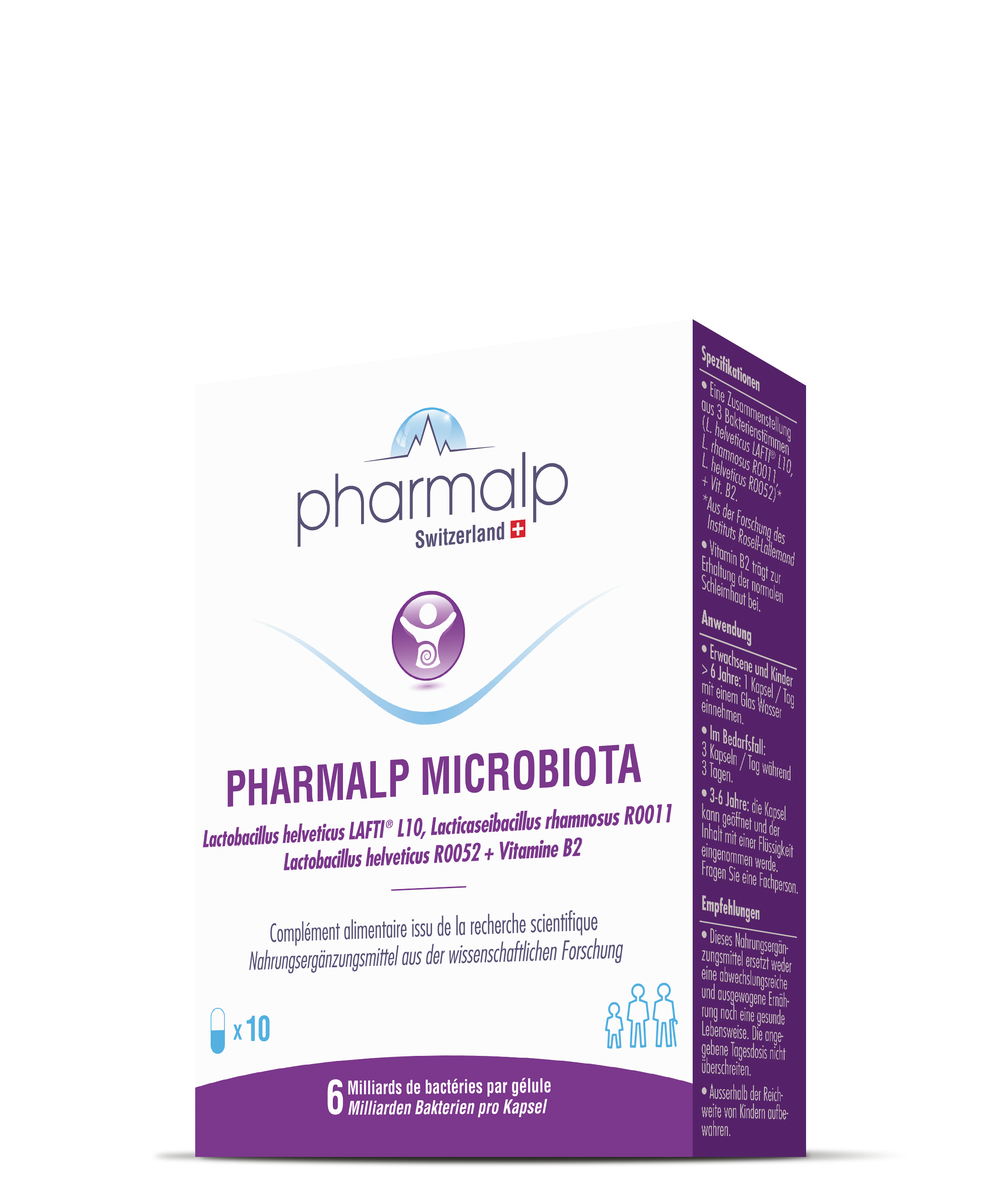 La flore intestinale, composée de milliards de micro-organismes, est un facteur central de notre bien-être. Elle peut être déséquilibrée par le stress, les changements de saison, les voyages ou la prise de médicaments. Pharmalp MICROBIOTA offre un soutien ciblé dans de tels moments.