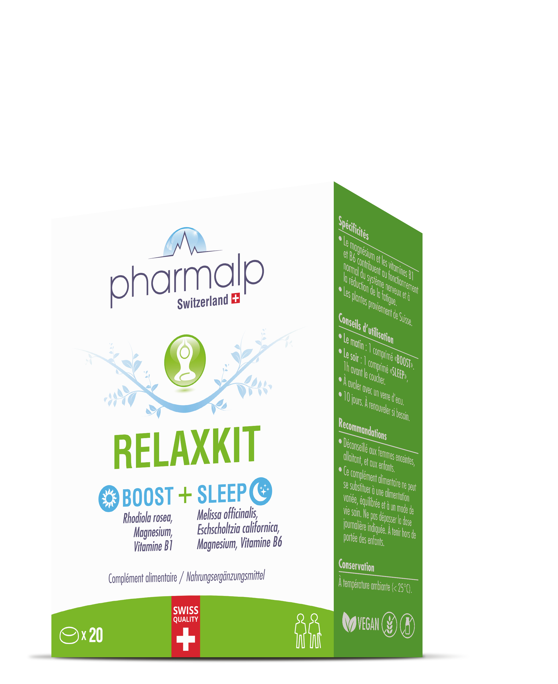 Le RELAXKIT de Pharmalp est un complément alimentaire innovant spécialement conçu pour soutenir les rythmes naturels diurnes et nocturnes de l'organisme. Il combine les pouvoirs des plantes alpines suisses avec des vitamines et des minéraux essentiels pour stimuler le métabolisme en période de stress.