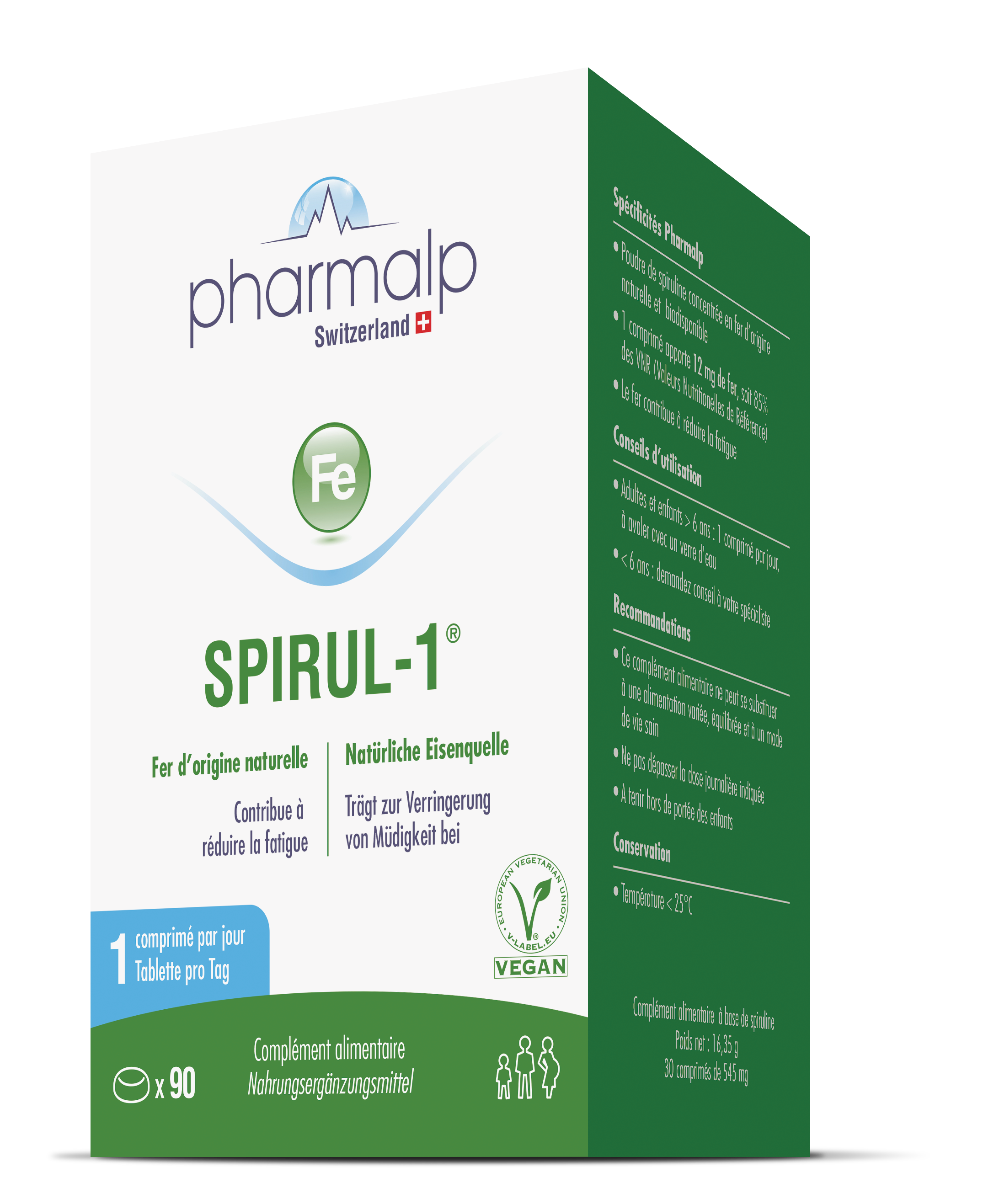 Pharmalp Spirul-1® comprimés 90 pièces - Soutien naturel en cas de carence en fer