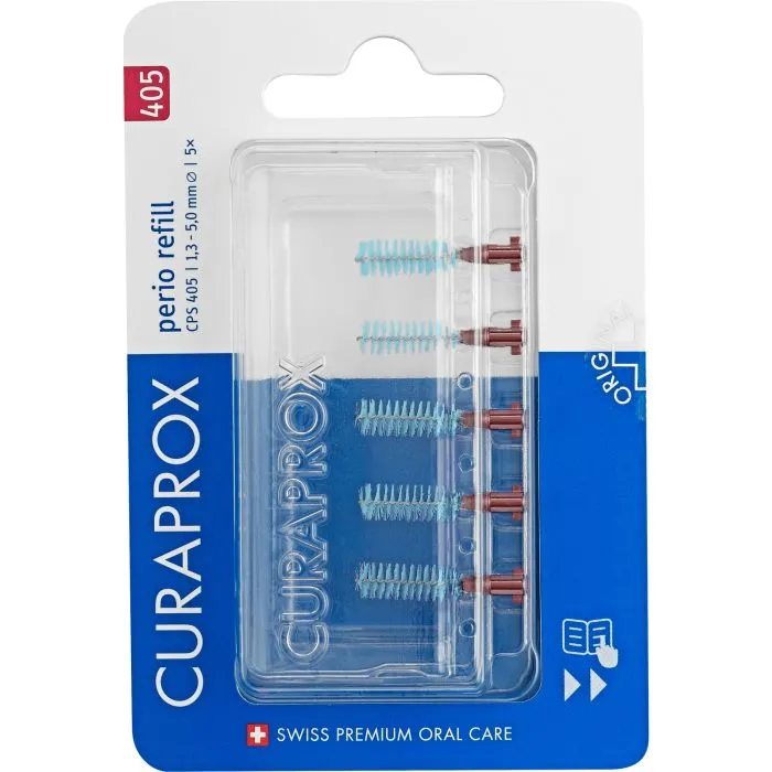 Une hygiène buccale optimale avec Curaprox CPS 405 perio plusLes brossettes interdentaires Curaprox CPS 405 perio plus sont spécialement conçues pour nettoyer efficacement les espaces interdentaires et améliorer ainsi la santé bucco-dentaire.Avec leur design unique et leur finition de haute qualité, elles offrent un nettoyage en profondeur qui va bien au-delà de ce que peuvent faire les brosses à dents classiques.Des matériaux de haute qualité pour un nettoyage en douceurLes brosses sont composées de fins filaments Curen qui peuvent éliminer même les plus petites particules. Elles sont particulièrement douces pour les dents et les gencives. Utilisation : Placer la brosse dans le support et l'introduire délicatement dans l'espace interdentaire. Effectuer un léger mouvement de va-et-vient. Entretien : rincer à l'eau courante après chaque utilisation. Si nécessaire, il est également possible d'utiliser une solution désinfectante. Changer : Pour des résultats optimaux, la brosse doit être changée tous les trois mois.