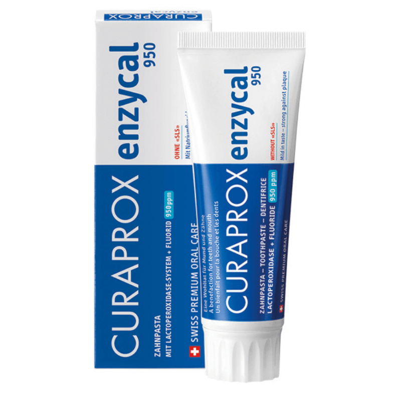Découvrez le dentifrice Curaprox Enzycal ZeroLe dentifrice Curaprox Enzycal Zero est un produit indispensable pour votre hygiène bucco-dentaire quotidienne. Grâce à sa formule spéciale sans fluor et sans agent moussant SLS, il est particulièrement doux pour les dents et les gencives.Protection et soins pour vos dentsGrâce aux enzymes qu'il contient et qui sont également présentes dans la salive, ce dentifrice favorise la fonction protectrice naturelle de la salive. En même temps, le xylitol qu'il contient assure une haleine agréablement fraîche. Utilisation : Utiliser une quantité de la taille d'un petit pois deux fois par jour.Avantages : Pas de fluor, pas de SLS, protège contre les caries et favorise des gencives saines.
