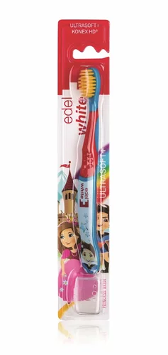 IntroductionLa brosse à dents pour enfants EDEL+WHITE Flosserbrush Ultrasoft est plus qu'une simple brosse à dents. C'est un instrument de santé bucco-dentaire spécialement conçu pour les dents et les gencives sensibles des enfants.Design et matériauAvec ses poils ultra-souples, elle offre un nettoyage doux mais efficace. Son design ergonomique et son manche antidérapant permettent aux petites mains de la tenir facilement.UtilisationCette brosse à dents est idéale pour un usage quotidien. Elle aide à éliminer la plaque dentaire et à prévenir les caries - pour un sourire sain, jour après jour.Il suffit de l'appliquer sur le dentifrice et de la brosser en petits cercles sur les dents.N'oubliez pas de nettoyer également l'arrière des dents !Rincer abondamment après le brossage.