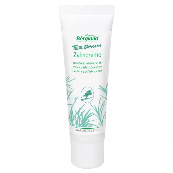 Bergland dentifrice à l'arbre à thé 50 ml Le dentifrice à l'arbre à thé Bergland est une solution naturelle et efficace pour vos soins bucco-dentaires quotidiens. Grâce aux avantages uniques de l'huile d'arbre à thé, connue pour ses propriétés antibactériennes, ce dentifrice aide à lutter contre la plaque dentaire et à maintenir les gencives en bonne santé.Ingrédients naturels Cette formule spéciale ne contient pas de colorants ou d'arômes artificiels. Au lieu de cela, elle utilise des ingrédients naturels comme l'huile d'arbre à thé pour favoriser la santé de vos dents et de votre bouche.Utilisation Appliquez-le simplement deux fois par jour ou après chaque repas. Appliquez une quantité de la taille d'un pois sur votre brosse à dents et brossez soigneusement vos dents.Exemples d'utilisation :Pour le nettoyage quotidien des dentsPour la prévention des caries et de la parodontitePour le soin des gencives sensibles ou enflammées
