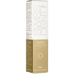 Découvrez la sensation de dents impeccablement propres et d'une blancheur éclatante avec le dentifrice Swissdent Crystal.Ce dentifrice de qualité supérieure a été spécialement conçu pour éliminer les taches et restaurer la blancheur naturelle de vos dents.Sa formule unique contient des microcristaux qui éliminent en douceur mais efficacement la plaque et les taches tout en renforçant et en protégeant l'émail des dents.Un produit haut de gamme pour vos soins bucco-dentaires quotidiensAvec son goût doux de menthe, le dentifrice Swissdent Crystal offre une expérience gustative rafraîchissante. Son utilisation régulière aide à prévenir les caries et assure une haleine fraîche.De plus, ce dentifrice haut de gamme est exempt de parabènes et de SLS (Sodium Lauryl Sulfate), ce qui le rend particulièrement doux pour votre bouche. Il convient également aux dents sensibles ou aux personnes sujettes aux aphtes ou aux ulcères buccaux.Exemple d'utilisation 1 : pour des résultats optimaux, utiliser deux fois par jour. Déposer une quantité de dentifrice de la taille d'un pois sur la brosse à dents et brosser pendant au moins 2 minutes.Exemple d'utilisation 2 : pour un éclaircissement encore plus intense, vous pouvez également utiliser le dentifrice Swissdent Crystal en combinaison avec la solution bucco-dentaire Swissdent Extreme.