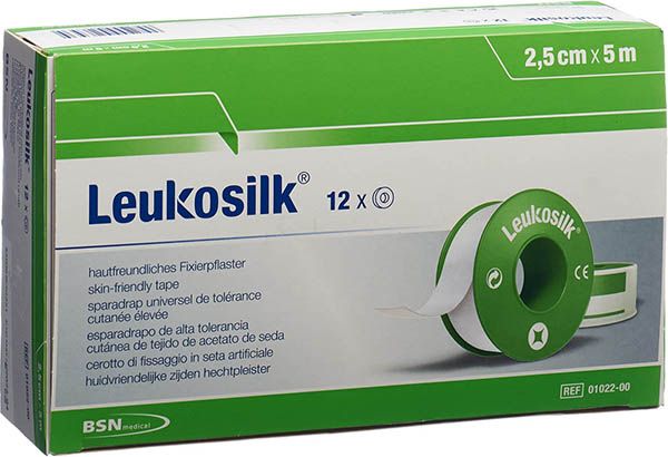 LEUKOSILK sparadrap de fixation doux pour la peau 5mx2.5cm - 12 pièces