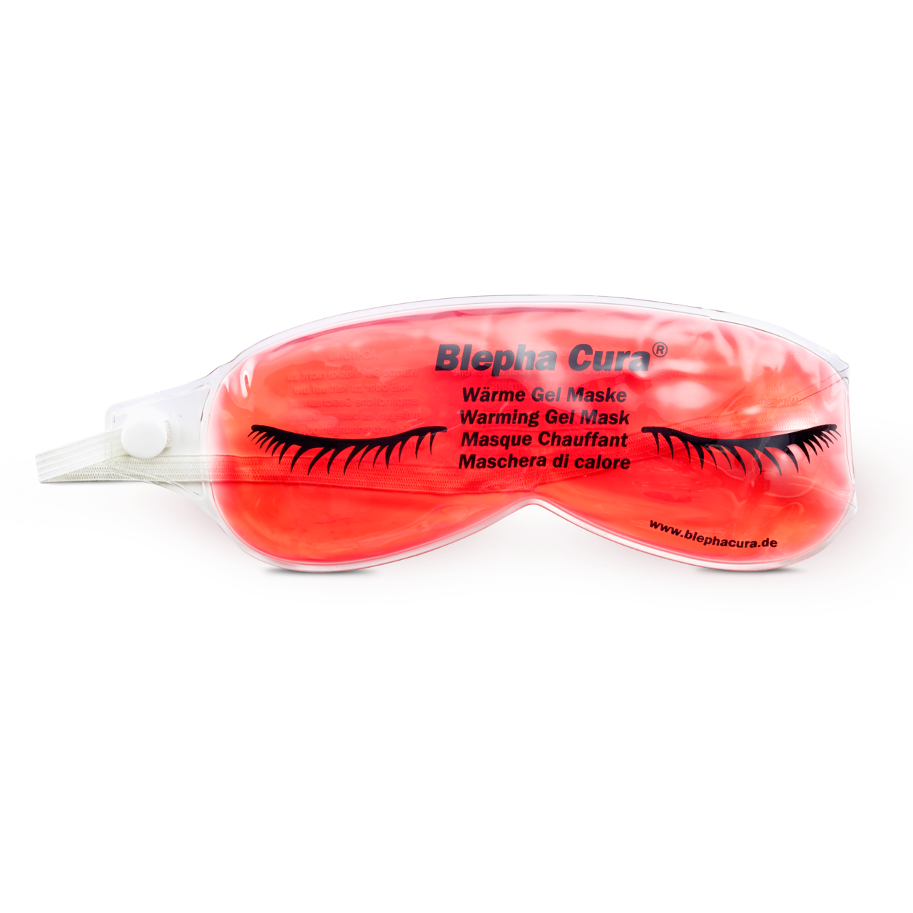 Appliquer le masque pour les yeux Blepha Cura® Hot/Cold, chauffé à environ 45 °C, sur les paupières fermées pendant environ 4 à 10 minutes et le fixer si nécessaire avec l'élastique.