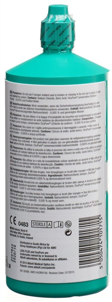 Lens Plus OcuPure est conditionné dans un flacon spécial PhotoProtect avec un bloqueur de lumière verte.