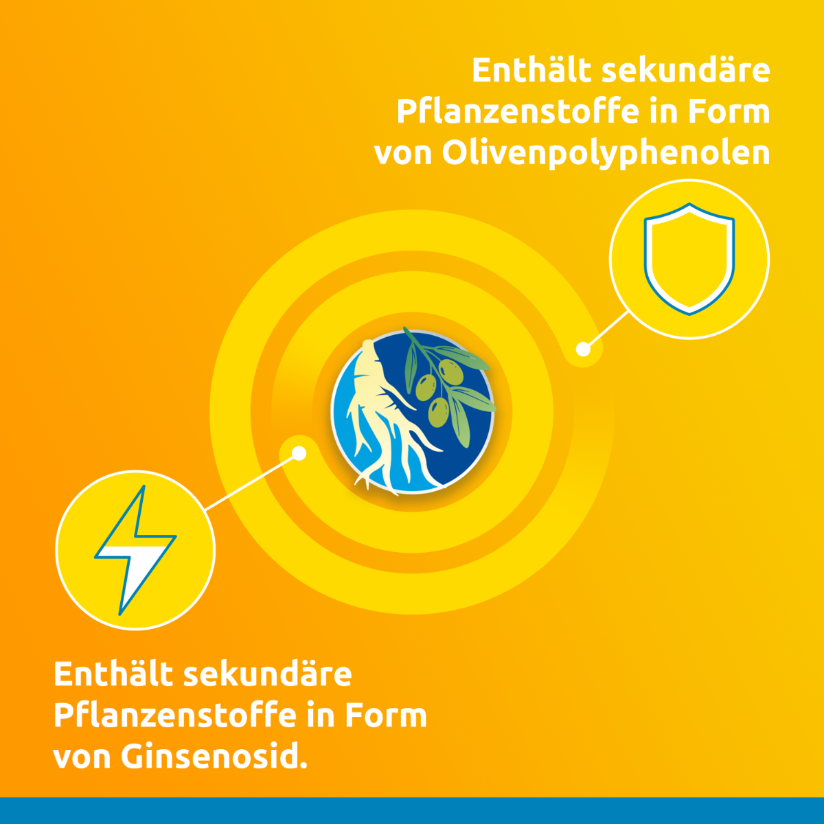 Ces comprimés effervescents combinent un mélange soigneusement sélectionné de micronutriments essentiels avec des extraits de ginseng et d'olive de haute qualité. Les ginsénosides et les polyphénols d'olive qu'ils contiennent sont des composés bioactifs aux propriétés nutritionnelles.