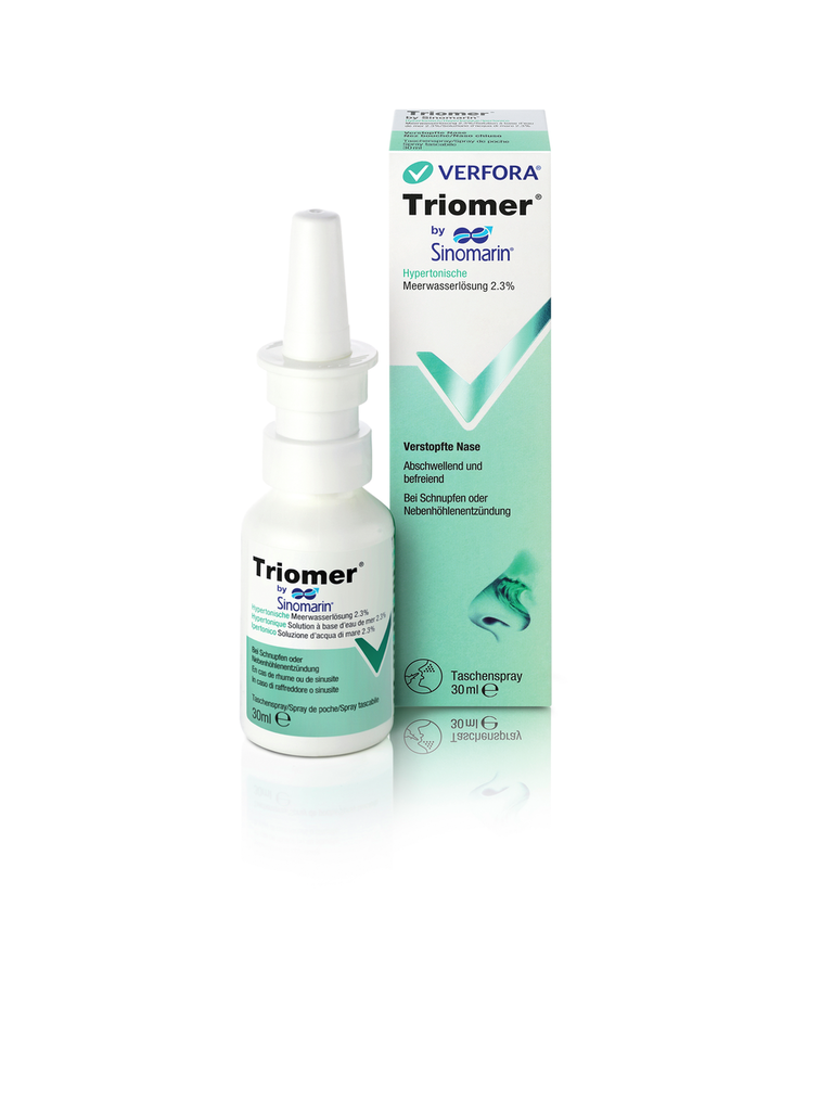 Vous pouvez utiliser Triomer hypertonique by Sinomarin en combinaison avec d'autres remèdes contre le rhume afin de soutenir leur action.