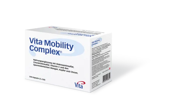 Les gélules Vita Mobility Complex offrent une combinaison de haute qualité d'ingrédients soigneusement sélectionnés qui contribuent de manière ciblée au soutien de la fonction normale du cartilage, des os et du tissu conjonctif. Ce complément alimentaire a été développé en tenant compte des besoins d'un mode de vie actif et réunit des nutriments importants pour le bien-être.