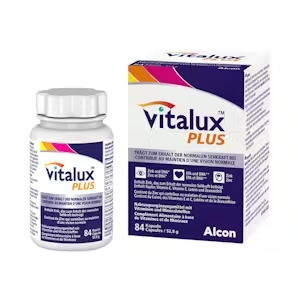 Les capsules Vitalux® Plus sont un complément alimentaire spécialement conçu pour contribuer au soutien de la vision naturelle. Leur composition unique contient des nutriments essentiels tels que la lutéine et la zéaxanthine, qui sont connus pour protéger vos yeux des dommages causés par la lumière. De plus, elle contient des acides gras oméga-3 comme le DHA et l'EPA, le DHA contribuant au maintien d'une vision normale.
