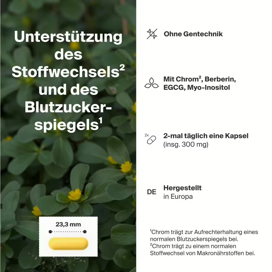 Il convient particulièrement aux personnes qui souhaitent équilibrer leur taux de glycémie de manière naturelle et soutenir la santé de leur métabolisme - idéal en combinaison avec une alimentation équilibrée et un mode de vie actif.