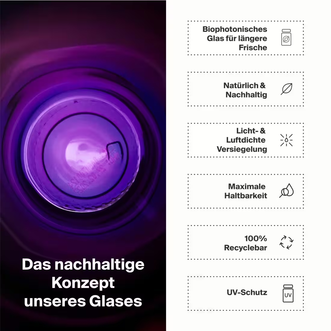 - Végétalien, sans lactose, en bocaux MIRON protégés contre les UV.